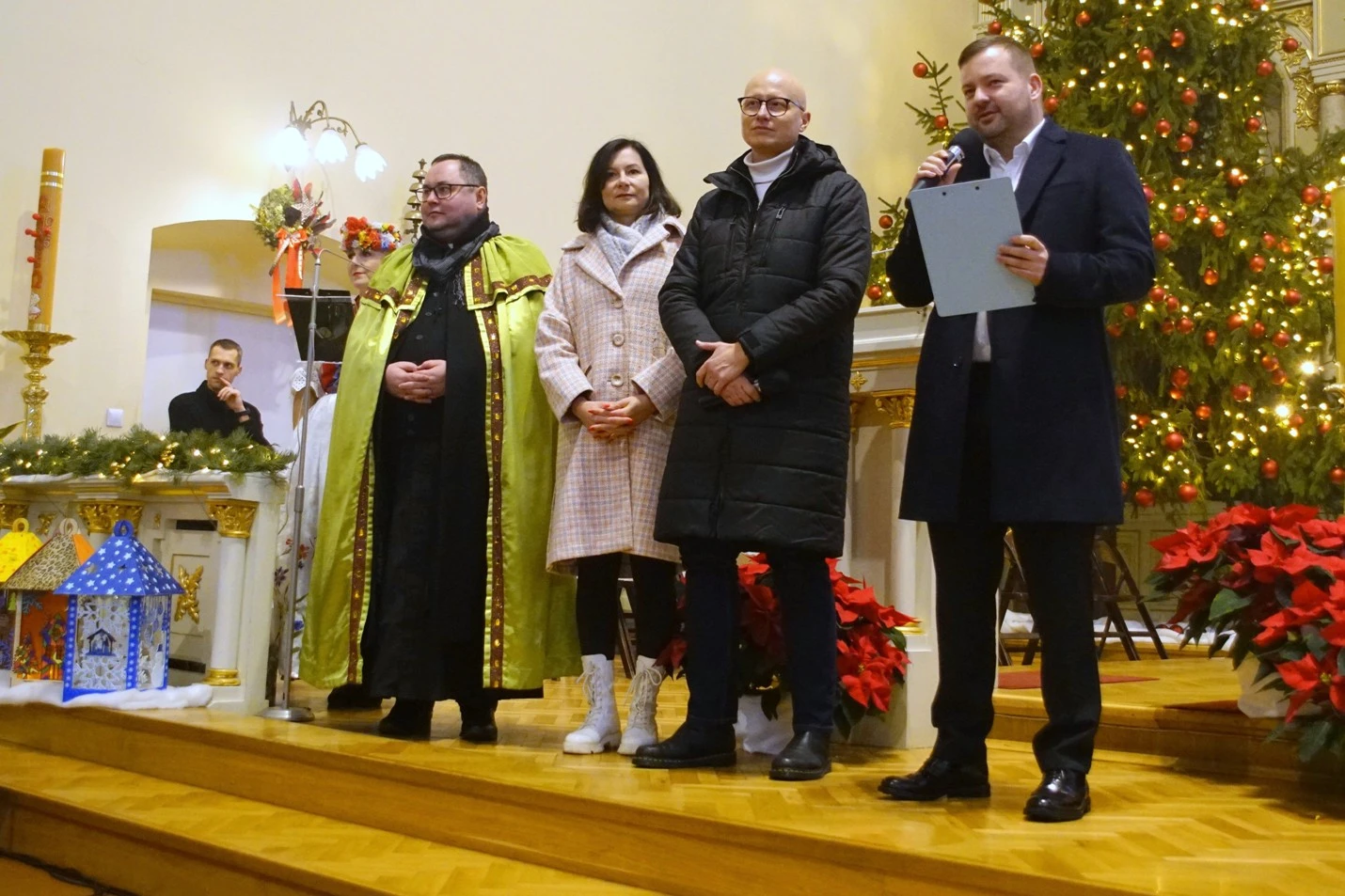 Następnie Orszak wyruszył do kościoła pw. św. Stanisława Kostki, gdzie Trzej Królowie złożyli dary Dzieciątku Jezus. Po uroczystościach odbyło się wspólne kolędowanie. Wystąpiły uczennice Szkoły Katolickiej, uczniowie Szkoły Muzycznej oraz chór Zespołu Pieśni i Tańca „Halka”.